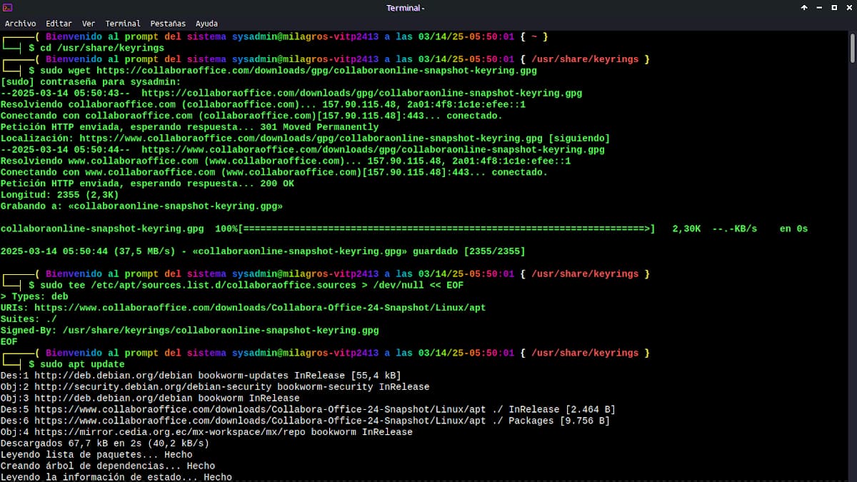 Si tienes una Distro Ubuntu actualmente a tu disposición (uso) con LibreOffice o cualquier otra Suite ofimática, y deseas probar en paralelo a Collabora Office Desktop (web oficial), pues la forma más fácil y confiable es seguir los pasos recomendados de forma oficial por los mismos Desarrolladores de dicho proyecto, los cuales son los siguientes: