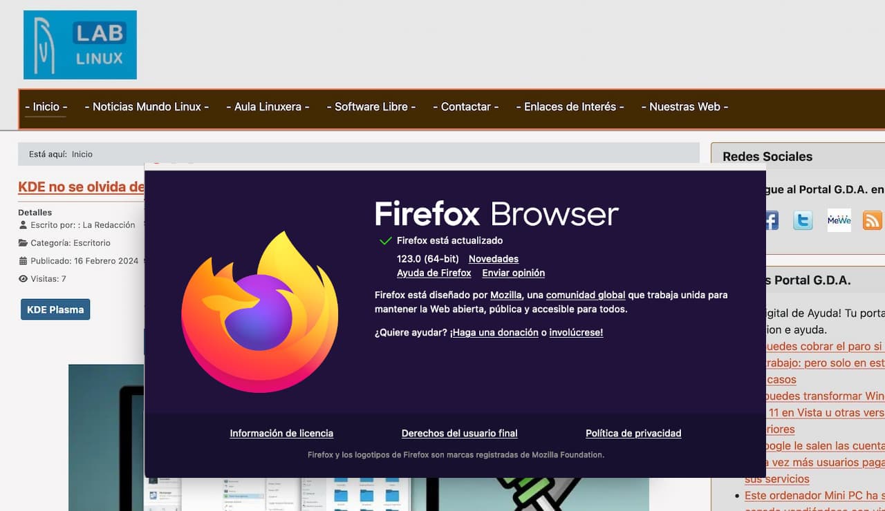 Firefox 123 ya está disponible desde su página web y también desde el repositorio de Mozilla para distribuciones basadas en Debian. Pronto se actualizarán sus paquetes flatpak y snap.