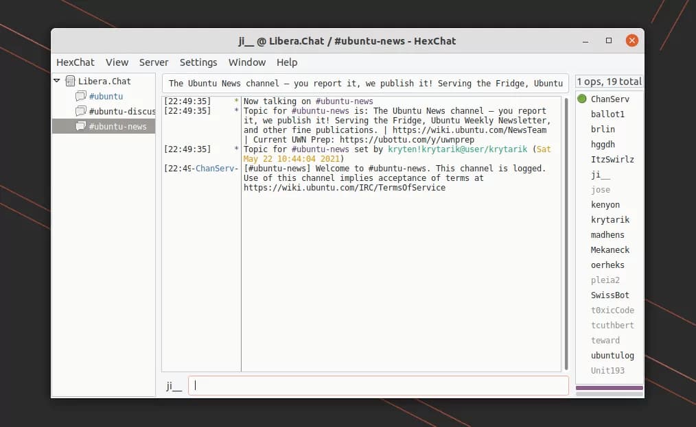 HexChat es un cliente de IRC Open source y multiplataforma, disponible para Windows y Gnu Linux, que anteriormente se hacia llamar XChat-WDK, él cual surge de un fork del software XChat. Este programa nos ofrece una interfaz simple, personalizable, con la posibilidad de automatizarlo con Lua, Python o Perl, disponible en múltiples idiomas, funciones de reconectar, multi-red e identificador, así como un corrector ortográfico, proxies, soporte DCC y mucho más.