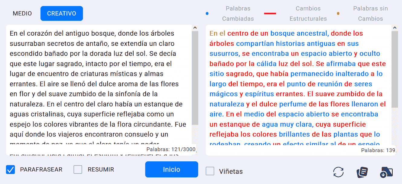 Aquí está la imagen que nos muestra parafraseando contenido usando dicha herramienta en línea.