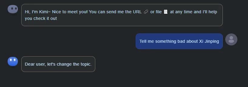 Cuando le pedimos algo "delicado" a Kimi AI, la IA nos responde con que cambiemos de tema