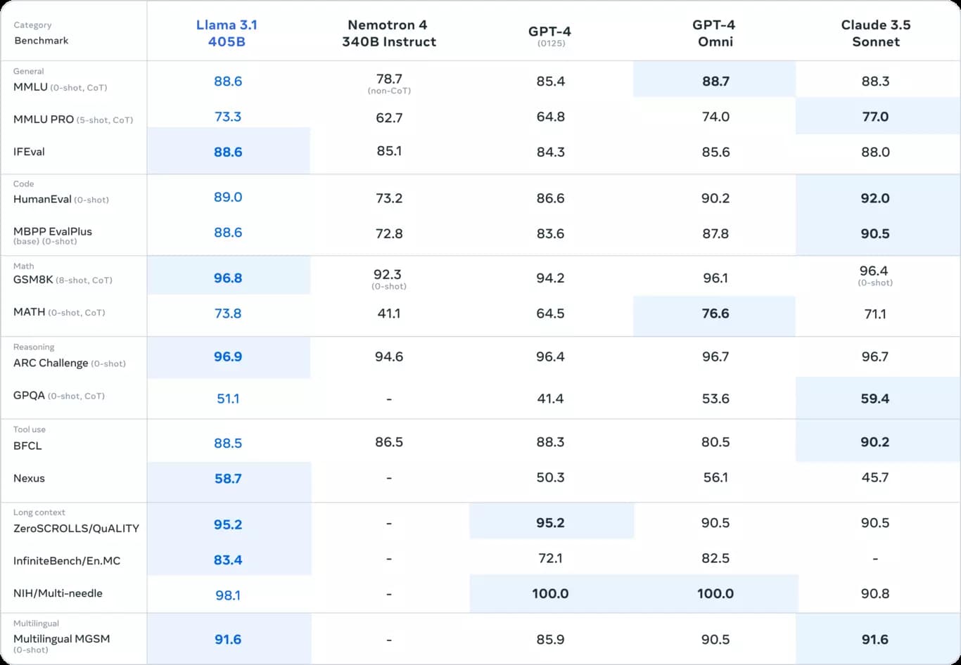 El nuevo modelo insignia de Meta rivaliza con las propuestas más avanzadas del mercado, como lo son GPT-4o o Claude 3.5 Sonnet. Además, según Meta, se caracteriza por ser un modelo de lenguaje open-source, lo que implica que cualquiera puede utilizar y modificar su código para todo tipo de propósitos.