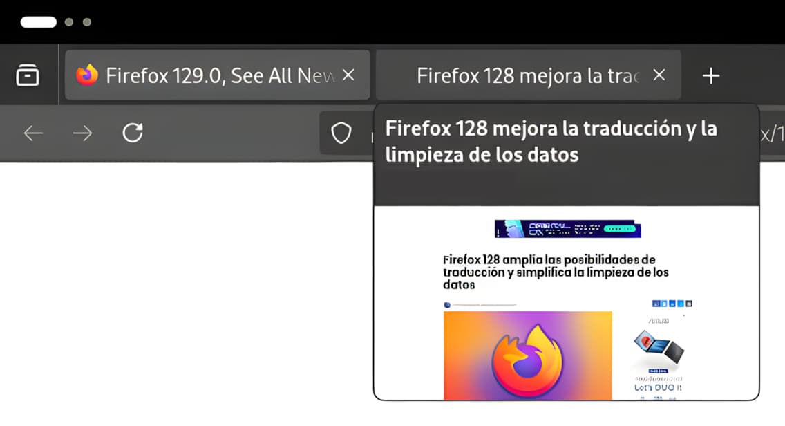 La segunda novedad más interesante de Firefox 129 es la previsualización de las pestañas que se han quedado en segundo plano, que suelen ser todas las que hay en la ventana del navegador menos la que está activa. Esta característica está presente en muchos navegadores web basados en Chromium y ahora llega a la aplicación de Mozilla para ofrecer una vista previa del contenido sin tener que hacer clic sobre la pestaña que lo contiene. Sin embargo, su puesta en funcionamiento puede requerir de establecer browser.tabs.hoverPreview.enabled con valor true en la sección about:config y reiniciar el navegador para que funcione.