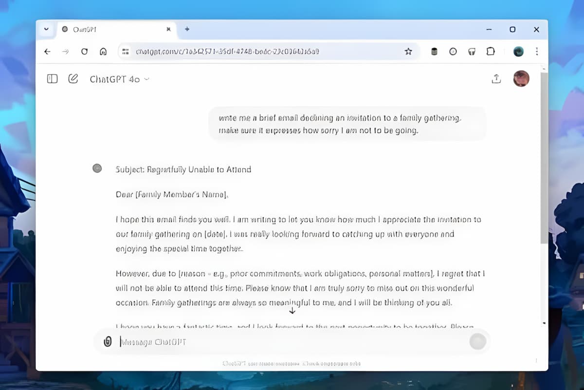 No pierdas tiempo redactando correos electrónicos: haz que ChatGPT lo haga por ti. Solo especifica el contexto, lo que quieres decir y el estilo en el que deseas decirlo, y el bot de IA producirá un bloque de texto adecuado sin ningún problema.