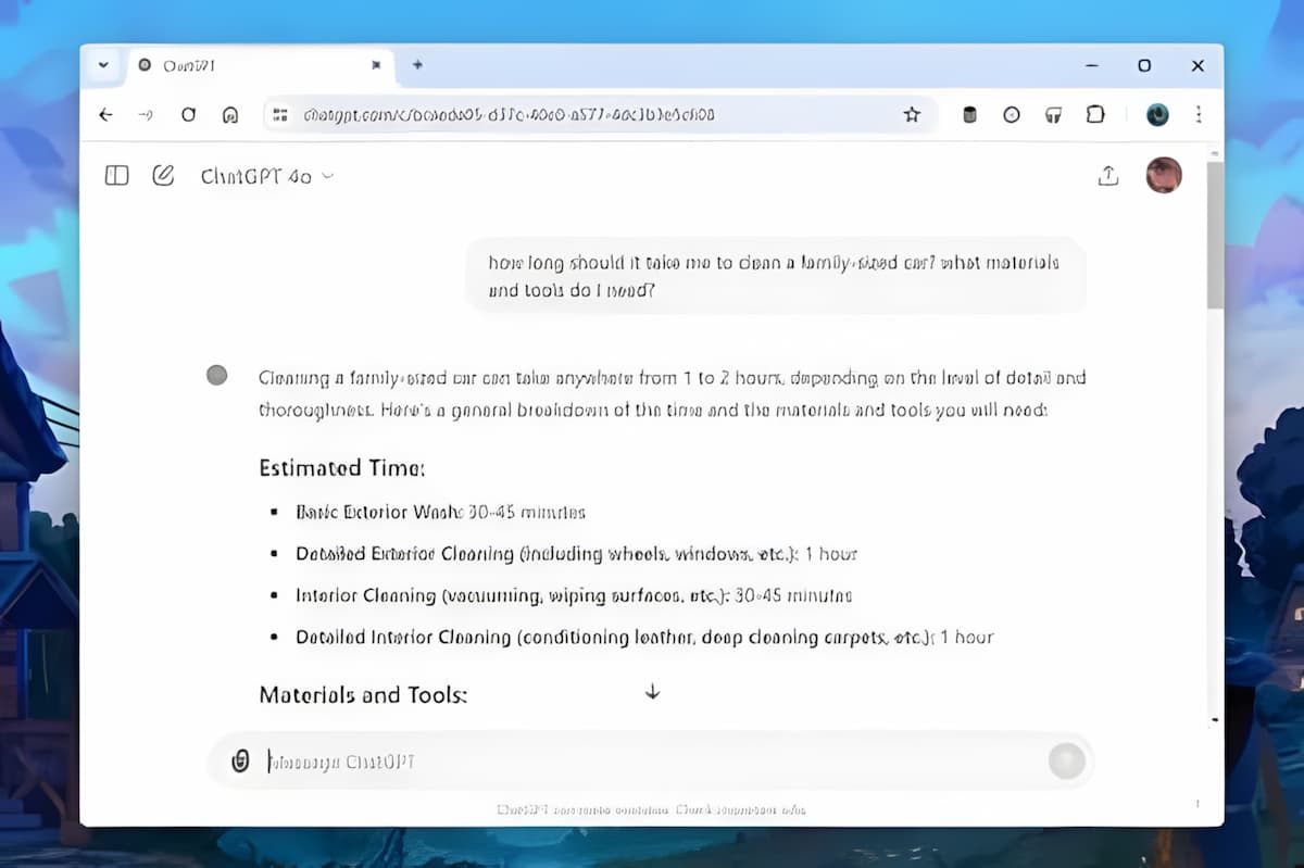 Por supuesto, necesitas proporcionar algunos detalles aquí—como el tamaño de tu baño—pero puede minimizar el riesgo de que tu agenda se enrede. Aún mejor, el bot de IA puede decirte los materiales y herramientas necesarios para cada trabajo, lo que debería significar que no perderás tiempo porque no tienes lo que necesitas.