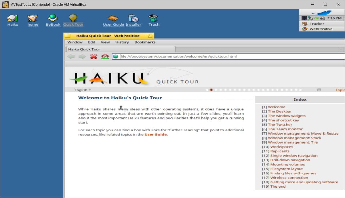 Haiku es un proyecto abierto y gratuito en constante desarrollo, sin embargo, suele ser útil y potente para usuarios de computadoras de todos los niveles. Además, el proyecto consta de un solo equipo escribiendo todo, desde el núcleo, controladores, servicios de usuario, kit de herramientas y pilas de gráficos hasta las aplicaciones de escritorio y prefletes incluidos. Más sobre Haiku