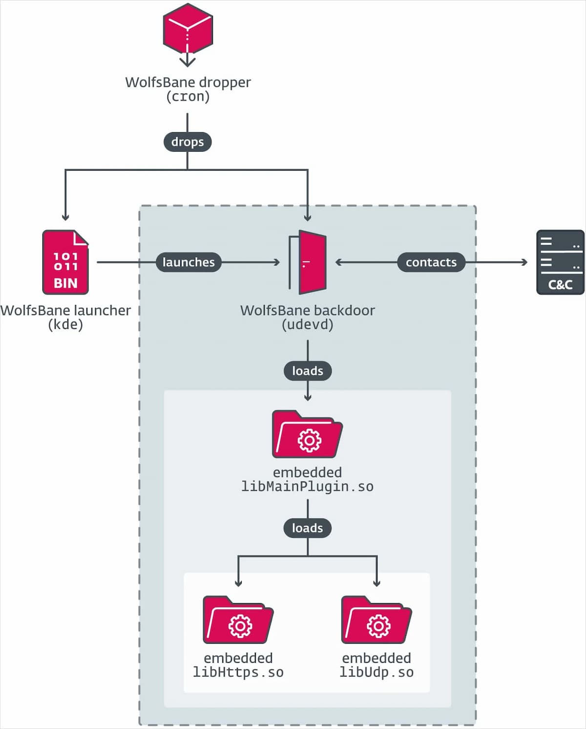 Según los investigadores de ESET, WolfsBane es un malware completo que incluye tres componentes principales: