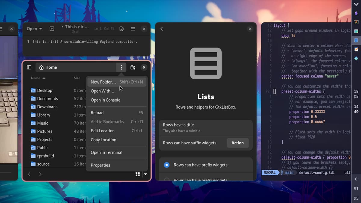 Se dio a conocer el lanzamiento de la nueva versión de Niri 0.1.10, la cual llega con varias características y mejoras, de las cuales se destaca las mejoras de compatibilidad con ventanas flotantes, mejoras en la configuración de entrada, en el modo tableta, entre otras cosas más.