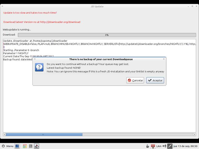 Se abrirá JDUpdate y actualizará jDownloader y sus complementos a la versión más actual.