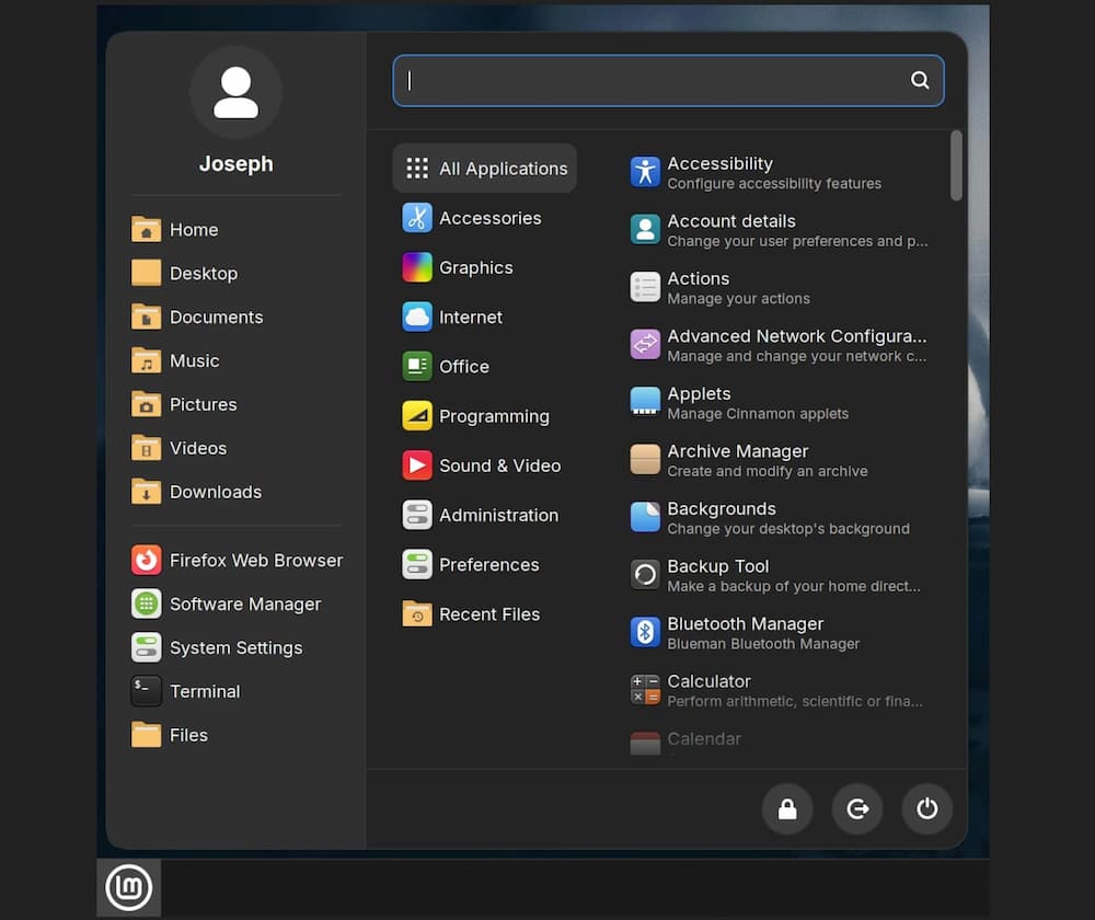 Bueno, ya que estamos… Así se vé el nuevo menú de inicio de Cinnamon.