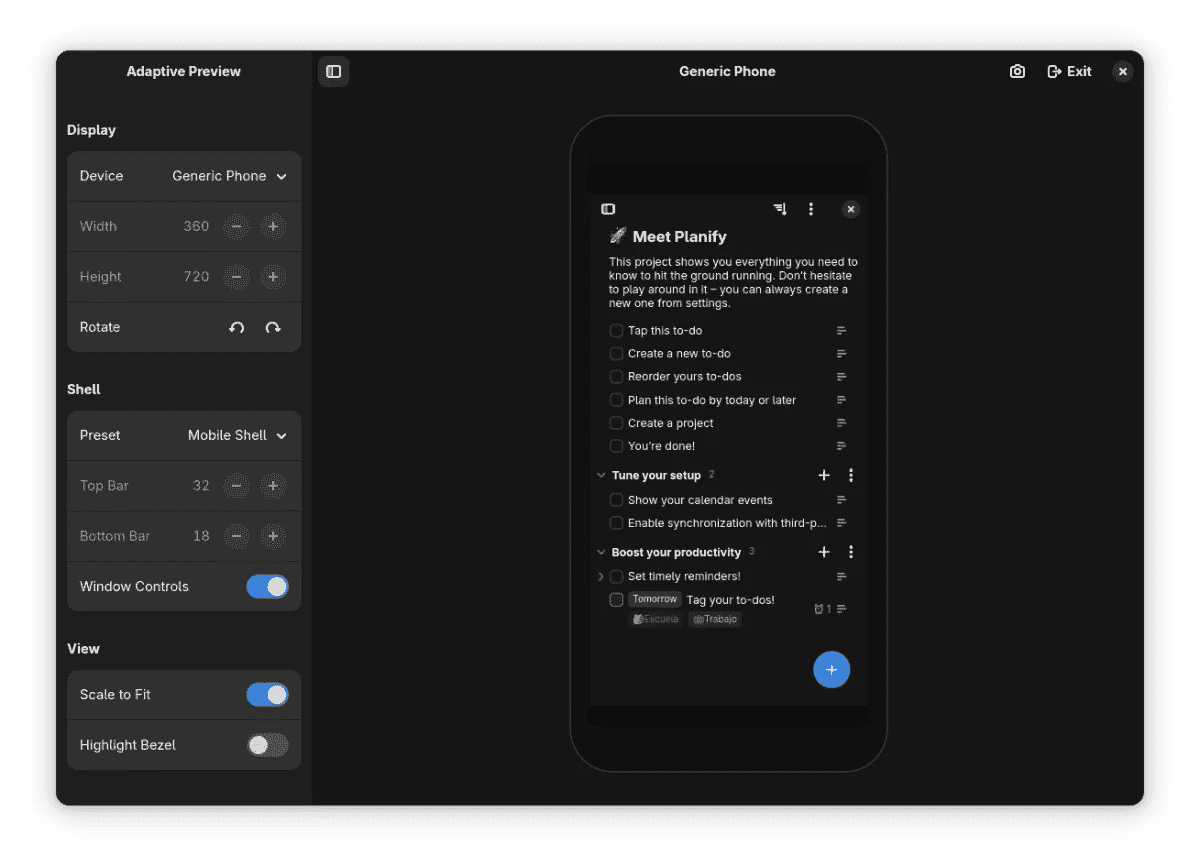 - Ventanas adaptativas (soporte parcial): mejoras iniciales para pantallas pequeñas hacen que Planify sea más cómodo de usar en diferentes tamaños de ventana.