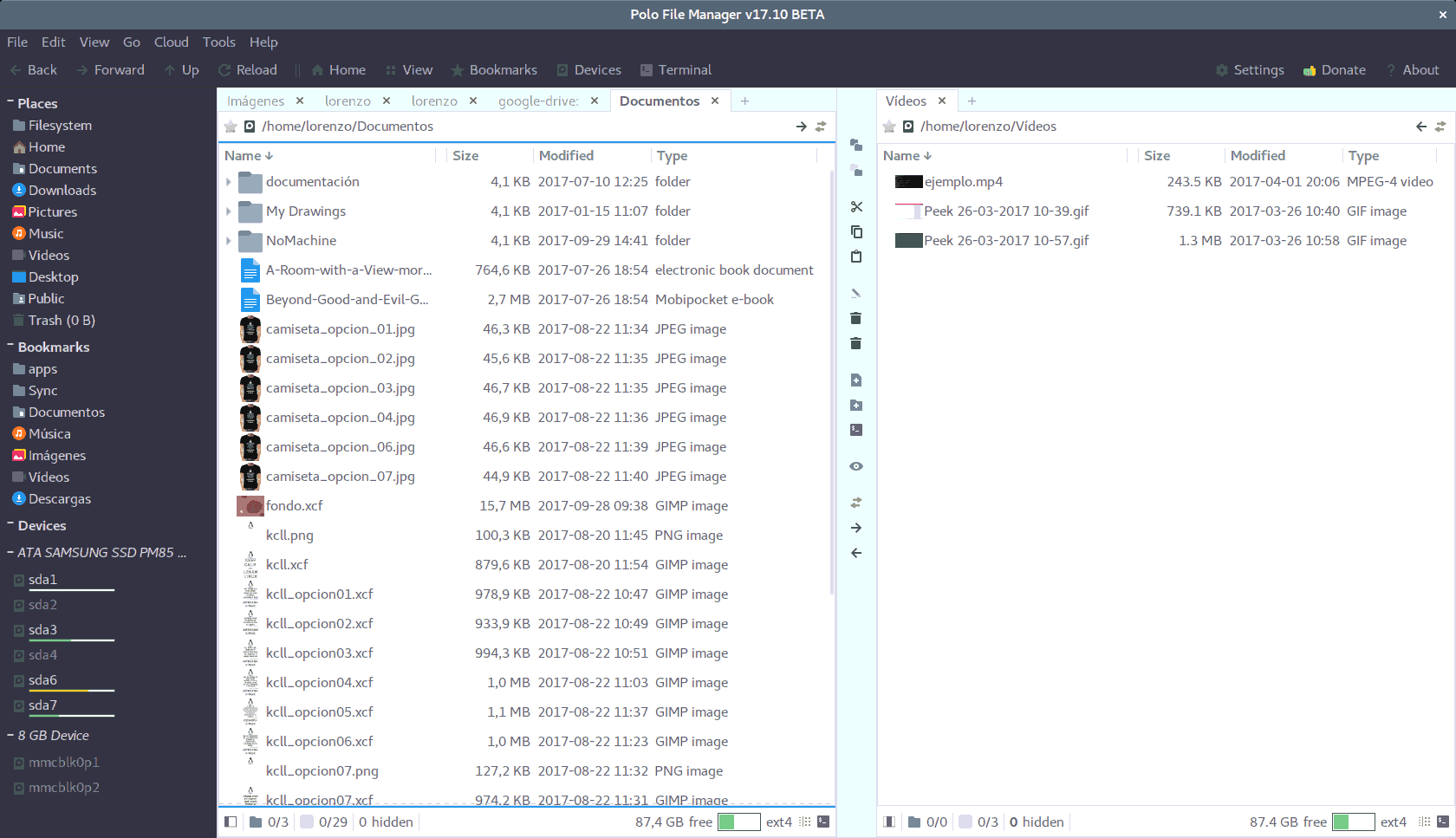 Polo File Manager, un gestor de archivos con múltiples paneles y pestañas