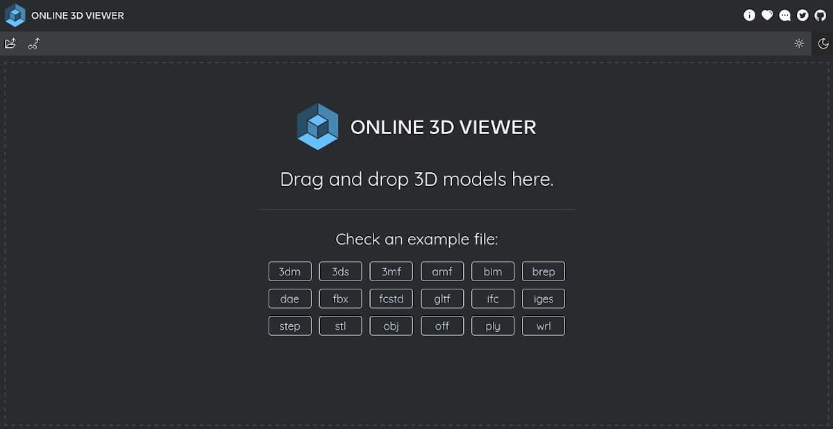 • Descripción: Online 3D Viewer es una solución web gratuita y de código abierto para visualizar y explorar modelos 3D en cualquier navegador web. Y es capaz de importar archivos en los formatos 3dm, 3ds, 3mf, amf, bim, brep, dae, fbx, fcstd, gltf, ifc, iges, step, stl, obj, off, ply, wrl; y exportar en los formatos 3dm, bim, gltf, obj, off, stl, ply. Y todo esto es posible gracias al uso de las librerías de software siguientes: three.js, pickr, fflate, draco, rhino3dm, web-ifc, occt-import-js.