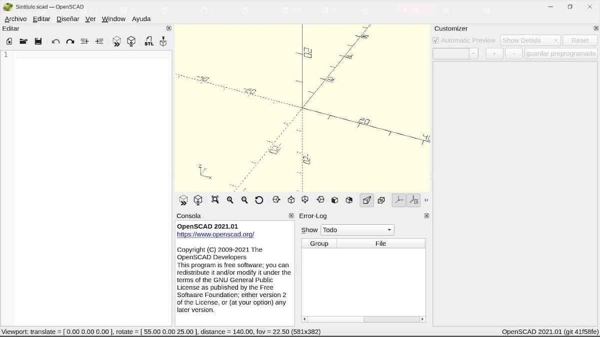 • Última versión disponible: OpenSCAD 2021.01 de fecha del 6 de febrero de 2021.