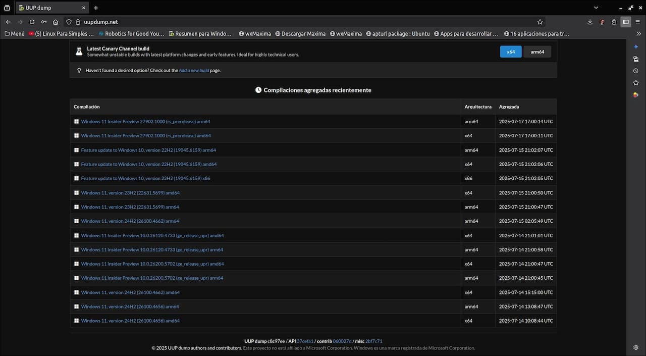 Cuando se es un profesional TI integral y avanzado trabajando dentro de una organización pública o privada, es decir, más que un simple usuario del hogar, es bien sabido que, para cumplir con nuestros objetivos profesionales, laborales y económicos usamos sin mayores problemas o limitaciones filosóficas, tanto las tecnologías libres, abiertas y gratuitas como las tecnologías privativas cerradas y pagas, para así cumplir con los objetivos del negocio donde trabajamos o prestamos nuestros servicios profesionales. En consecuencia, es muy normal que, aquellos que usamos estaciones de trabajo en las oficinas u ordenadores dentro de un hogar con sistemas operativos basados en Linux o BSD, tengamos la necesidad de obtener, probar y usar Windows (y hasta macOS). Sobre todo, en cualquier versión estable o de desarrollo existente o disponible. Y como esto no siempre es fácil de lograr desde, ni siquiera la web oficial de Microsoft, pues existen geniales alternativas como «la web de UUP dump, que nos permite descargar cualquier ISO de Windows desde la Terminal de Linux haciendo uso de los conocidos archivos UUP».