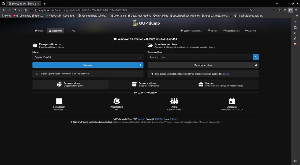 También es importante destacar que, UUP dump también permite algunas opciones de personalización, como seleccionar el idioma del sistema operativo, la edición de Windows (Home, Home N, Pro y Pro N), y otras configuraciones. Y por último, que todos los archivos de actualización son obtenidos directamente desde los servidores oficiales de Microsoft, lo que significa que los estamos obteniendo tal como si accediéramos a través de las actualizaciones oficiales de Windows Update.