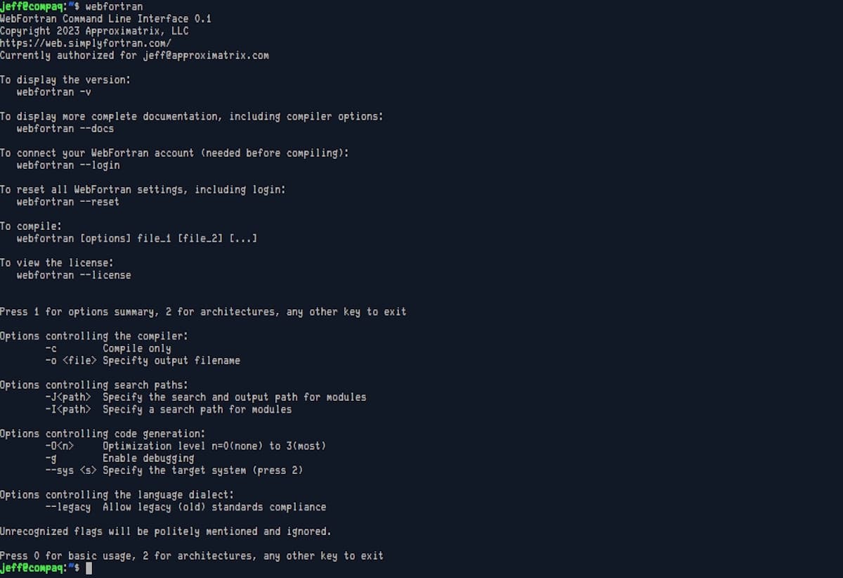 Webfortran es un utilitario CLI (Interfaz de línea de comandos) que permite a los usuarios acceder al compilador Fortran original en línea desde una terminal del sistema operativo sin necesidad de instalar grandes y complejas cadenas de herramientas. Por ello, no es necesario instalar bibliotecas ni entornos adicionales para lograr dicho objetivo. De esta forma, el compilador gestionará sin problemas la transferencia del código fuente de Fortran a nuestros servidores y entregará los objetos resultantes al equipo local. En resumen, esta diseñada para funcionar como cualquier otro compilador nativo de Fortran, pero desde la línea de comandos, permitiendo así compilar Fortran de forma rápida, sencilla y sin complicaciones. Conocer equipo de desarrollo
