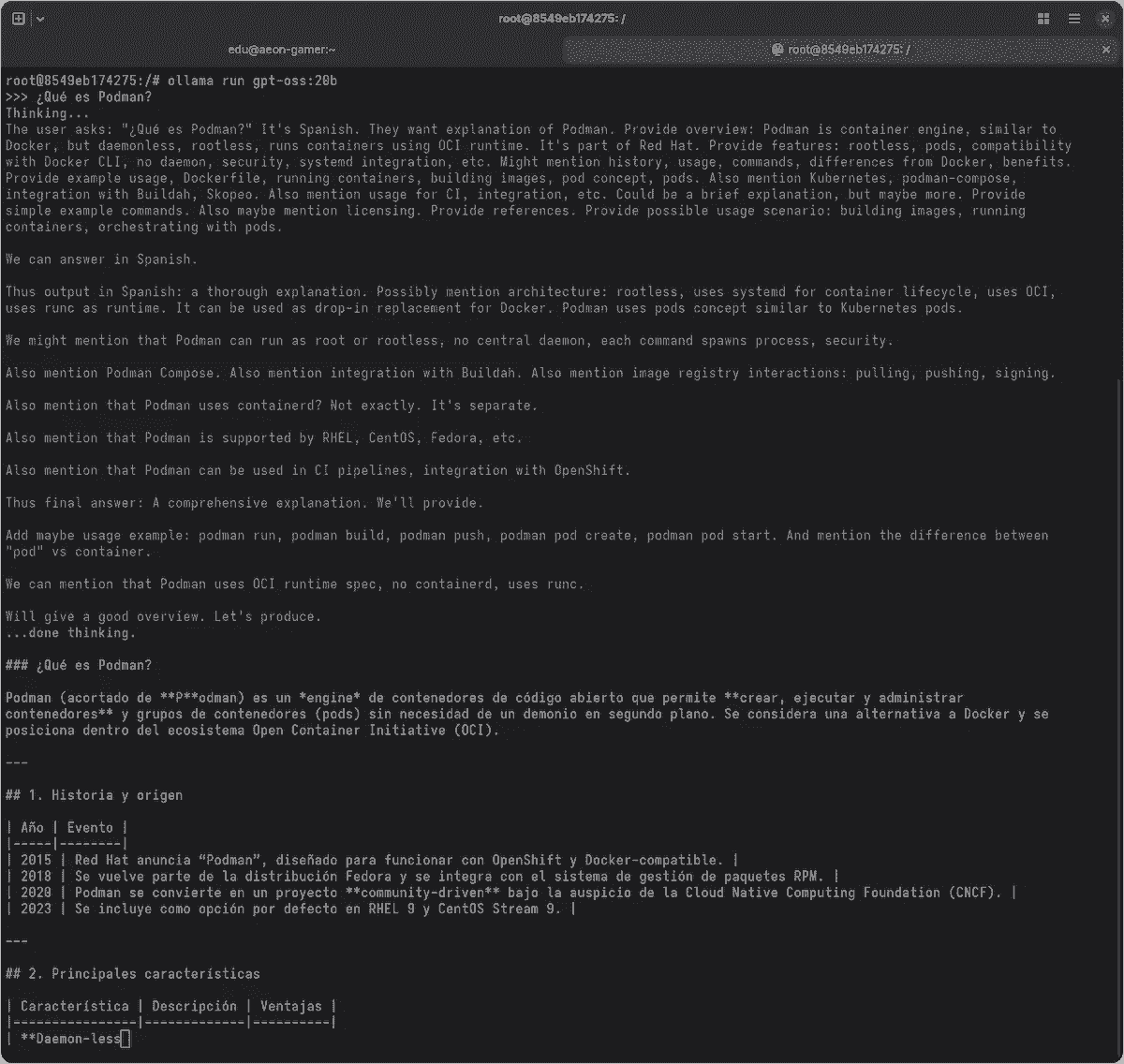 Después de exponer los aspectos más importantes de gpt-oss-120b y gpt-oss-20b, vamos a enseñar cómo instalar el segundo a través de Ollama con un contenedor de Docker puesto en funcionamiento sobre Podman.