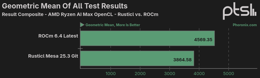 Rusticl lleva tiempo presente en Mesa y, según una prueba de rendimiento realizado por su desarrollador principal, Karol Herbst, parecía que podía superar al ROCm de AMD en algunas facetas. Acercándonos más a la actualidad, ha sido el medio Phoronix el que ha decidido comparar Rusticl con ROCm e Intel Compute Runtime para ver cuál su situación actual y si hoy en día es una buena alternativa. Ya os adelanto que los resultados, los cuales no voy a desgranar porque daría para una entrada demasiado larga, han sido un tanto dispares.