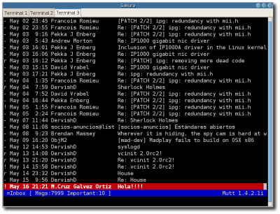 Sakura es un emulador de terminal basado en GTK y VTE. Tiene pocas dependencias por lo que no se limita al escritorio GNOME. La principal característica de Sakura es que utiliza una librería para proveer muchas terminales en una sola ventana y agrega un menú contextual con opciones básicas.