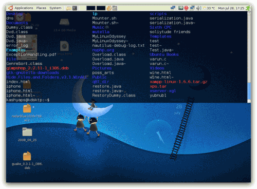 Tilda es un emulador de terminal basado en GTK+. Su diseño está inspirado en consolas para juegos como Quake que se despliegan hacia abajo desde la parte superior de la pantalla (así como Yakuake).
