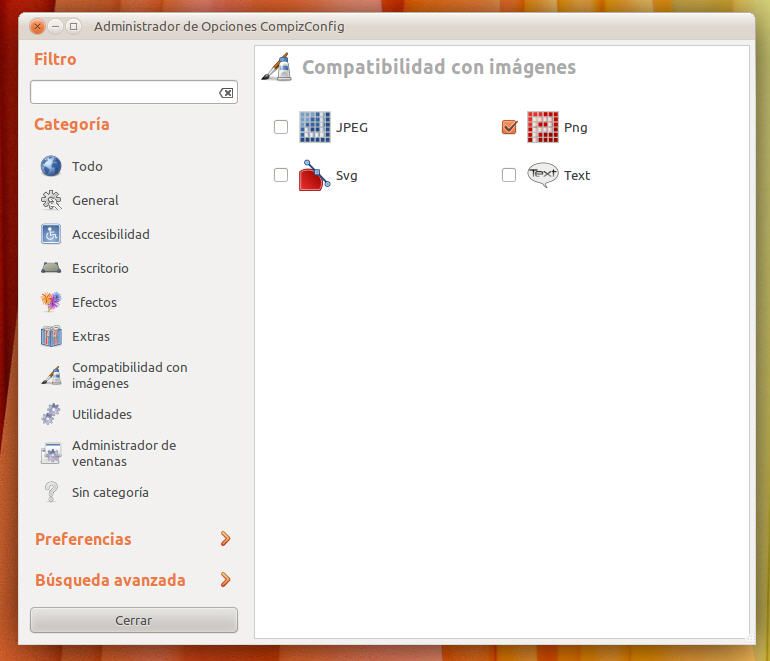 2. Lanzamos ccsm y nos aseguramos de que en el apartado Compatibilidad con imágenes tenemos activada la casilla Png.